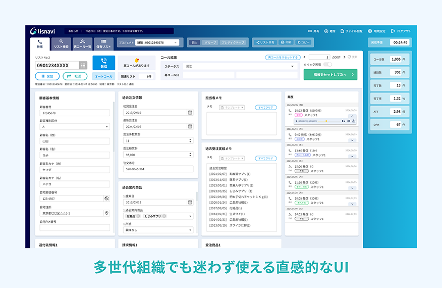 当チームには、パソコンの操作が得意ではないスタッフが多数います。20〜60代という幅広い年齢層が使いこなせるシステムであることが、選定における最重要条件でした。そこで重視したのは「UIの第一印象」です。List Navigator.(現lisnavi)を実際に見たときに、説明を受ける前から直感的に分かりやすいと感じました。費用感も検討軸のひとつでしたが、最後の決め手はやはり「誰でも使える」という操作性の確かさでした。